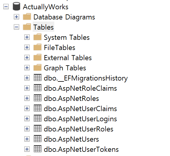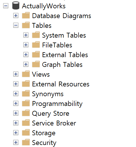 Tables 안에 아무것도 없었는데 Tables가 생성되었습니다.