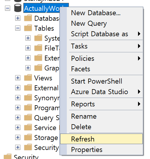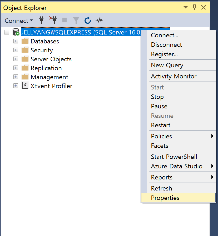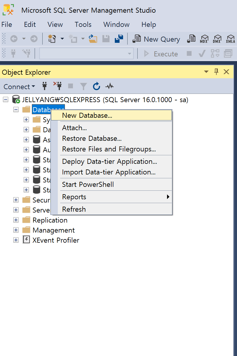 Sql Server Management Studio로 가서 Databse를 확인하겠습니다.