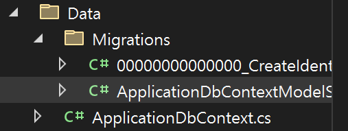Visual Studio에서 Data폴더 안에 Migrations 폴더에 가시면 생성을 위해 실행된 Script에 대한 정보가 만들어져 있음을 확인하실 수 있습니다.