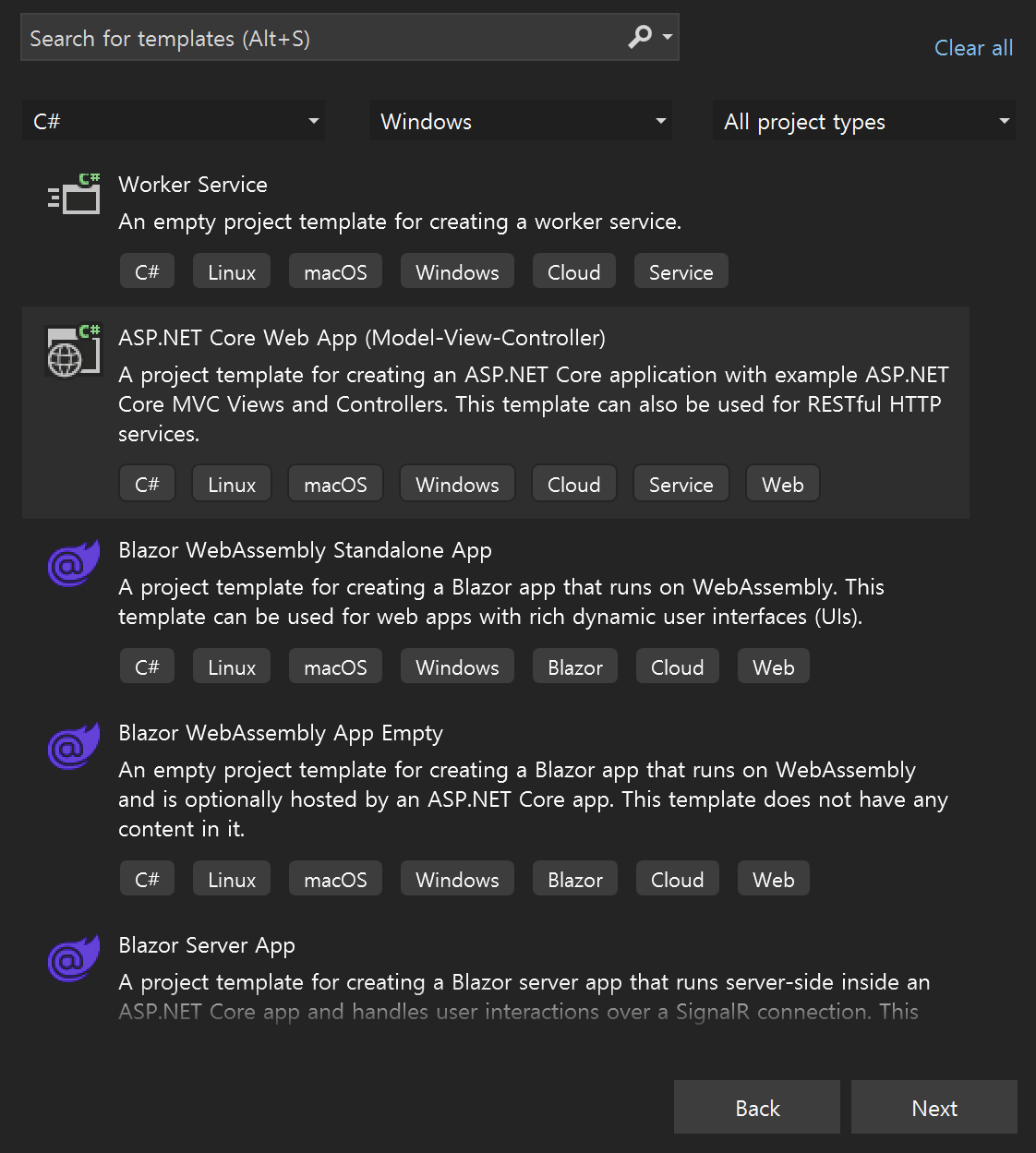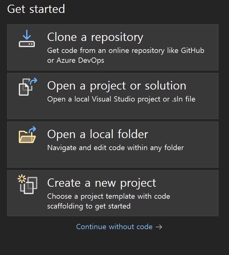 1.Visual studio 2022에서 프로젝트를 생성합니다.(Create a new project)