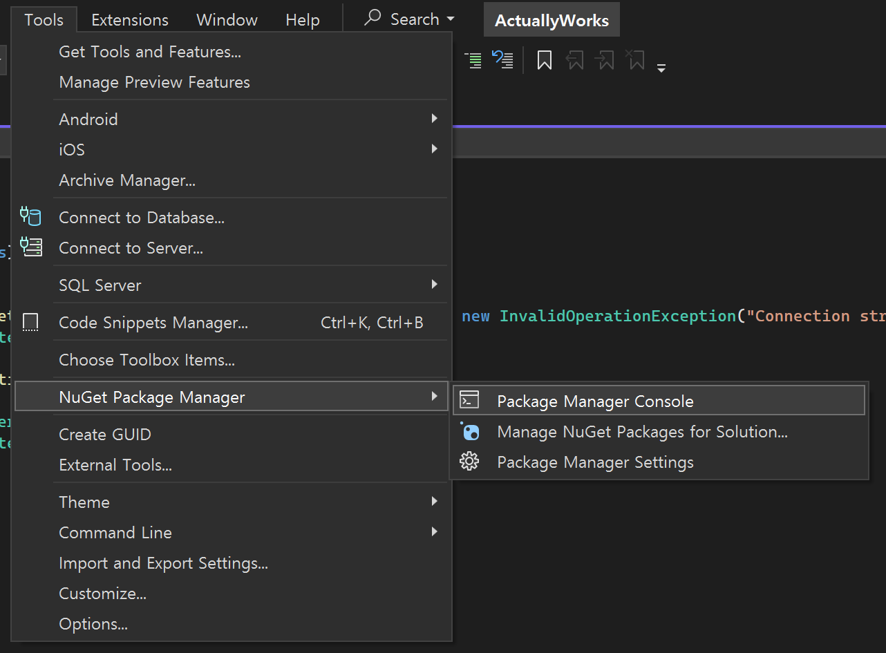 그러면 Visual studio에서 DB를 연결 후 Table생성을 시작합니다.